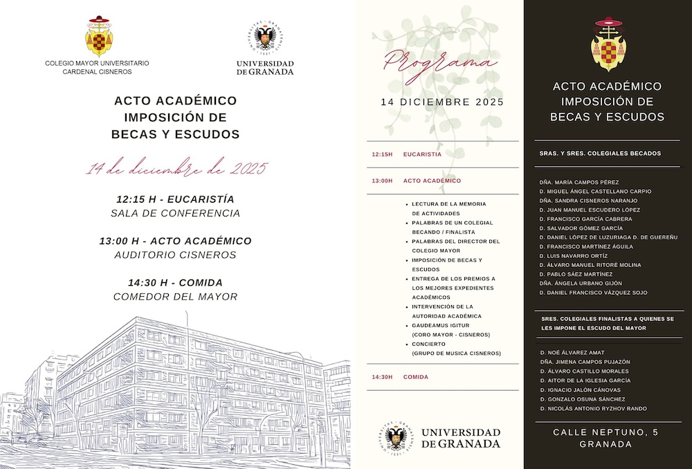 Este acto constituye una tradición profundamente arraigada en la vida colegial, en la que reconocemos el compromiso académico y personal de quienes forman parte del Colegio Mayor Universitario Cardenal Cisneros.